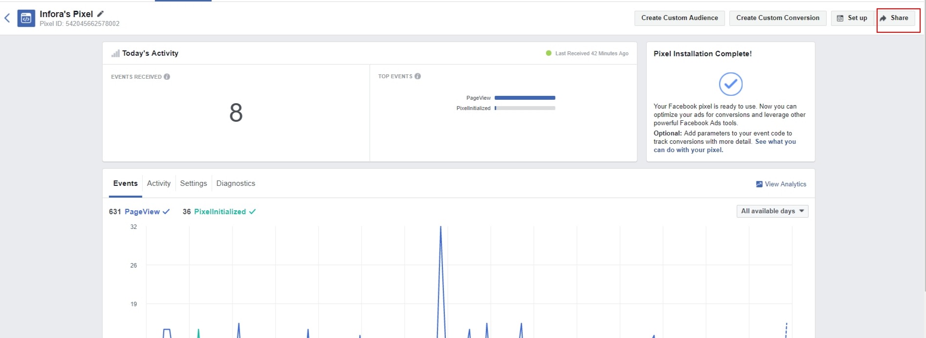 (sau intrati pe linkul https://www.facebook.com/events_manager/?business_id=249149696025052 &selected_data_sources=PIXEL&nav_source=mega_menu. Inlocuiti id-ul cu al Dvs)